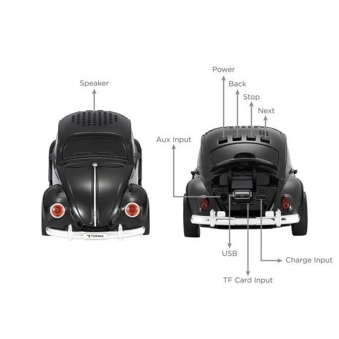 Spojite svoju glazbu sa stilom! Nosite nostalgiju u džepu i uhvatite ritam svoje glazbe gdje god idete uz Bluetooth zvučnik Torima D-49 Car Beetle Retro Design . Inspiriran dizajnom legendarne Bube, ovaj zvučnik nije samo audio uređaj već i privlačan ukrasni predmet.