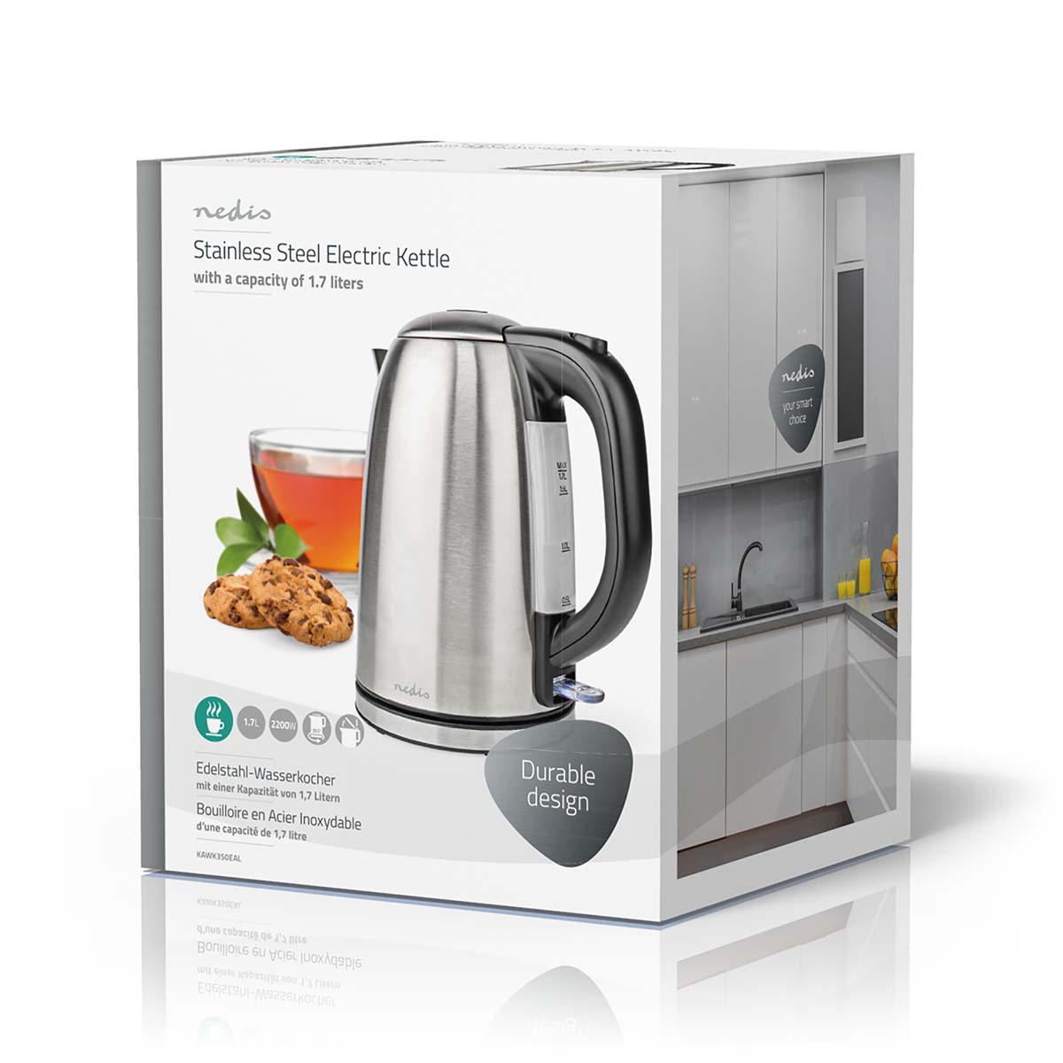 Ovo elegantno, snažno kuhalo za vodu radi jednako dobro kao što izgleda: ima velikodušni kapacitet od 1,7 litara i brzo prokuha zahvaljujući skrivenom grijaćem elementu od 2200 W. Završna obrada od nehrđajućeg čelika čini ovo kuhalo za vodu elegantnim, izdržljivim dodatkom vašoj kuhinji koji se lako čisti. Dizajnirana je da drži dovoljno vode za šest do osam šalica.