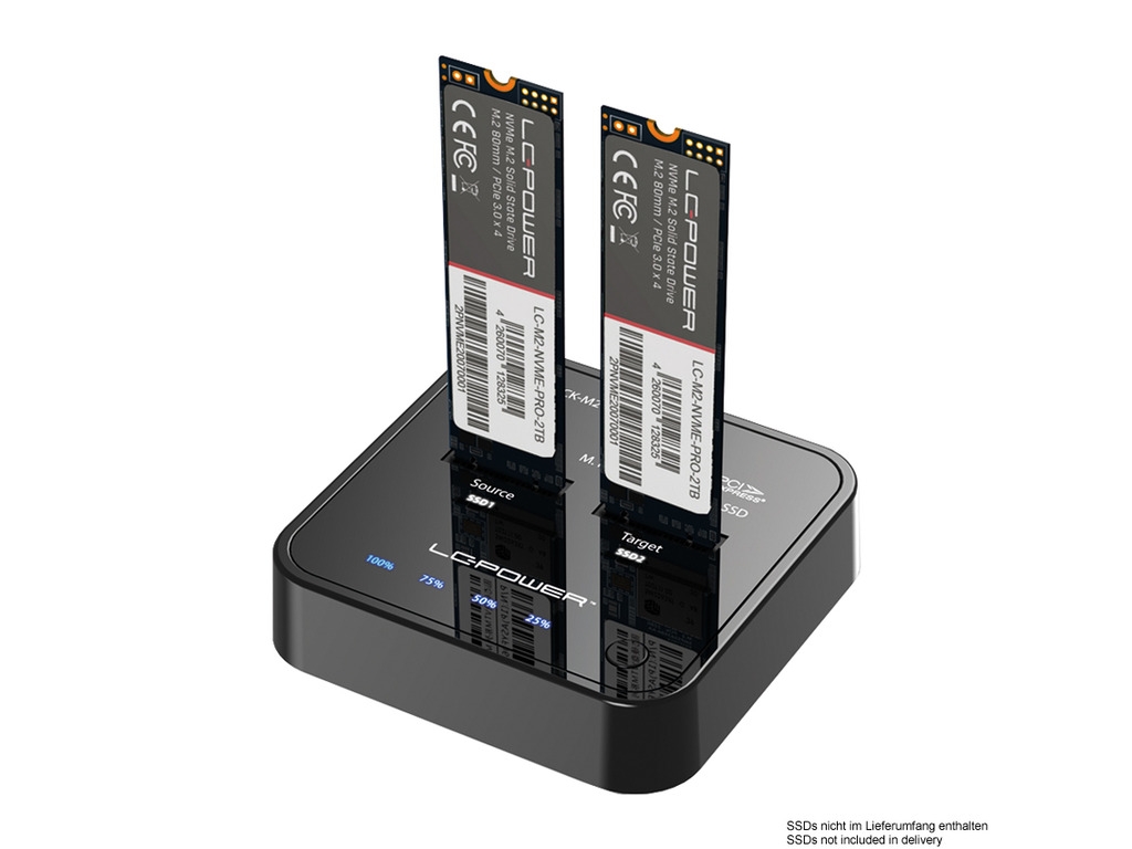 LC-Power Docking station NVME, M.2 SSD, USB-C port, 2x SSD-a, Transfer rate do 10 Gb/s.