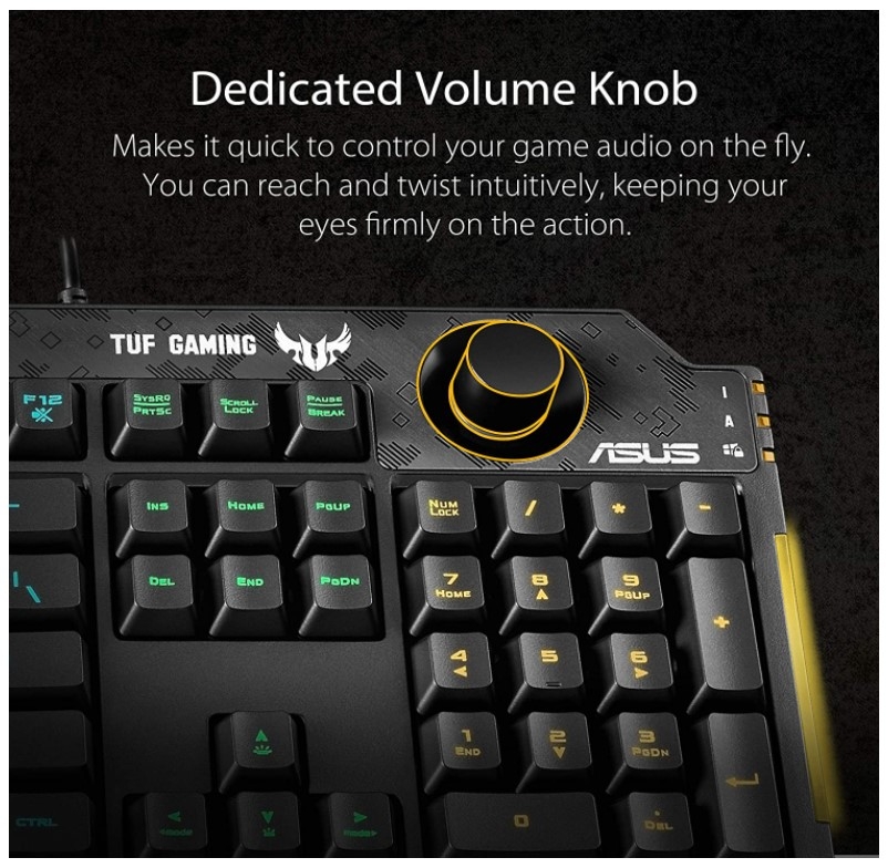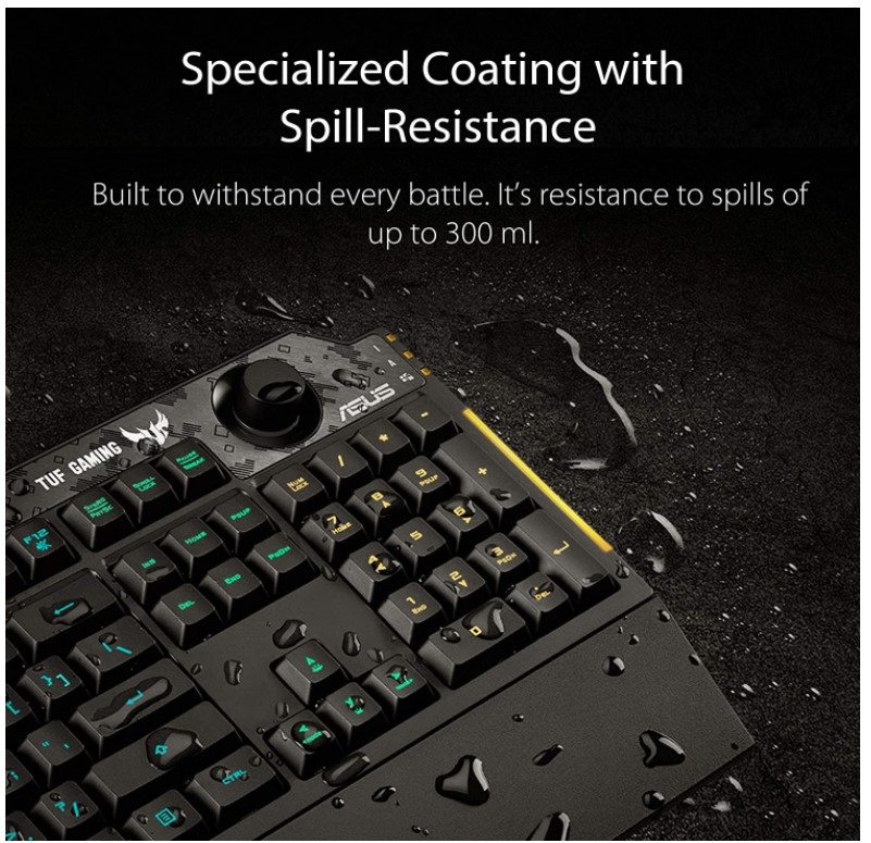 ASUS keyboard TUF Gaming K1,RGB,spill-resistance,dedicated volume knob, side light bar and Armoury Crate