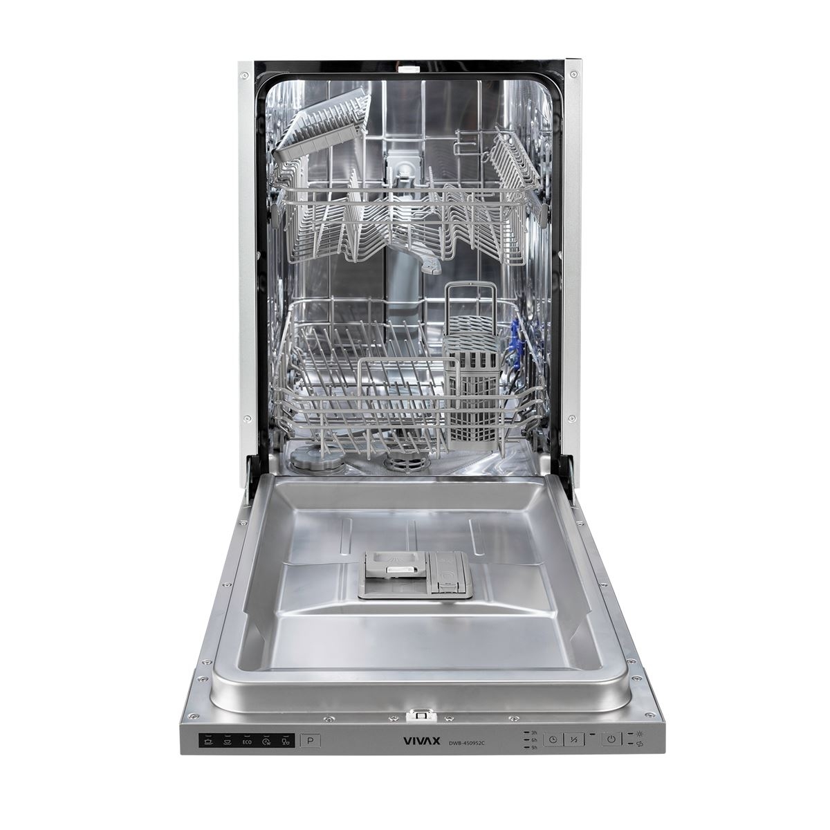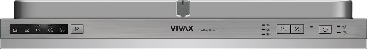 VIVAX ugradbena mašina za suđe DWB-450952C svojim kapacitetom omogućuje lako i učinkovito pranje 9 standardnih setova posuđa.
